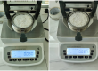第一步用鑷子夾起黃金手鐲置于測量臺上,等待屏幕數(shù)值穩(wěn)定按下MODE鍵記錄黃金手鐲在空氣中的重量12.555g,第二步用鑷子將黃金手鐲夾起放入準(zhǔn)備好的酒精內(nèi)清洗后小心地放入水槽架子上顯示水中重量11.900g,第三步待顯示屏數(shù)值穩(wěn)定后按下MODE鍵,儀器自動顯示產(chǎn)品密度999純度24K;