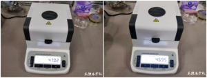 - 復位儀器,待儀器冷卻至40℃以下后,再取4g左右玉米面均勻鋪在樣品盤上,重復上述測試步驟;測試結束后得出第二組數據,顯示樣品的水分含量為46.95%;數據基本相同誤差僅為0.07%,表示測試結果可靠,可重復性好。