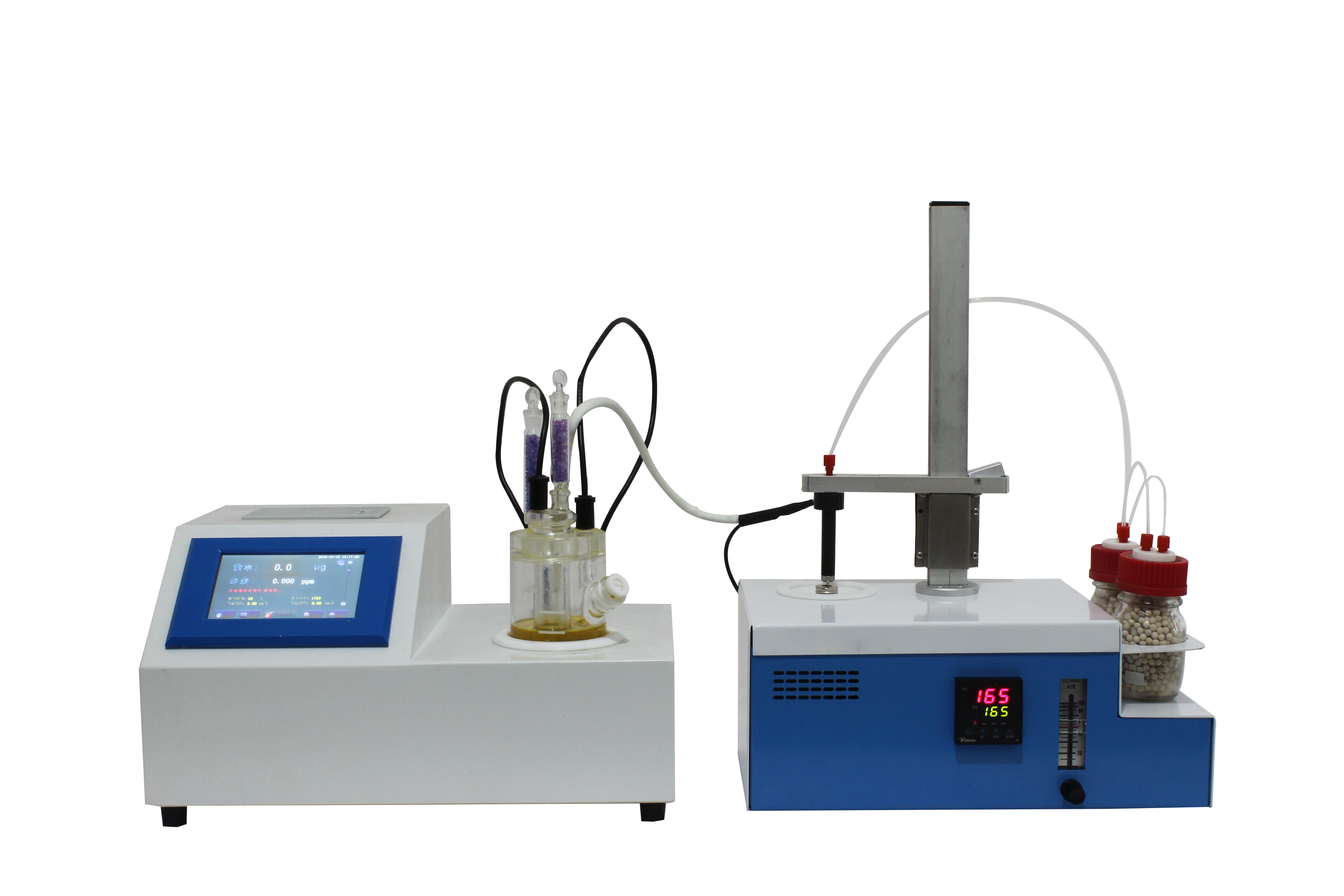 KSQL-310S-KHF 卡氏加熱爐主要分為兩個(gè)部分,第一個(gè)是V-310S庫侖法卡爾費(fèi)休水分測(cè)定儀,第二個(gè)是KHF-100卡氏加熱爐,由這兩部分組成了完整的KSQL-310S-KHF 鋰電池材料專用卡氏水分測(cè)定儀。