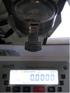 第二次測量,測試時間9分57秒,溫度105℃,水分0.814%