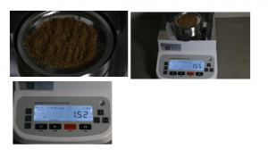 測試樣品1:用實驗勺提取4克藥品,置于不銹鋼托盤中,用實驗勺將藥品平鋪平均,溫度設置 105℃用儀器進行加熱,約4分鐘后檢測結束,檢測數(shù)據(jù)顯示1.55%;