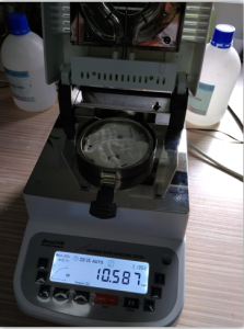 第三次,同樣克重方法定時(shí)測(cè)試5分鐘后檢測(cè)結(jié)束,檢測(cè)數(shù)據(jù)顯示0.14%;