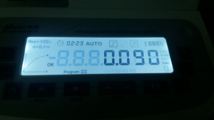 測(cè)試樣品1:為了檢測(cè)儀器的精確性,待儀器溫度降至30℃(常溫)以下時(shí)進(jìn)行第二次測(cè)量,用藥匙取樣10-12g,用藥匙取樣10-12g纖維紙上,溫度設(shè)置85℃用儀器進(jìn)行加熱,約3分鐘后檢測(cè)結(jié)束,檢測(cè)數(shù)據(jù)顯示0.090%;