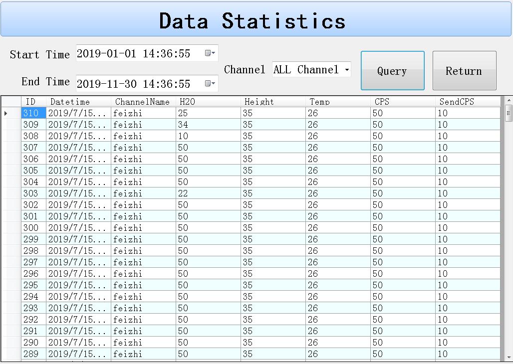 此界面主要顯示四個數(shù)據(jù)值:水分、物料高度、檢測通道和能量值