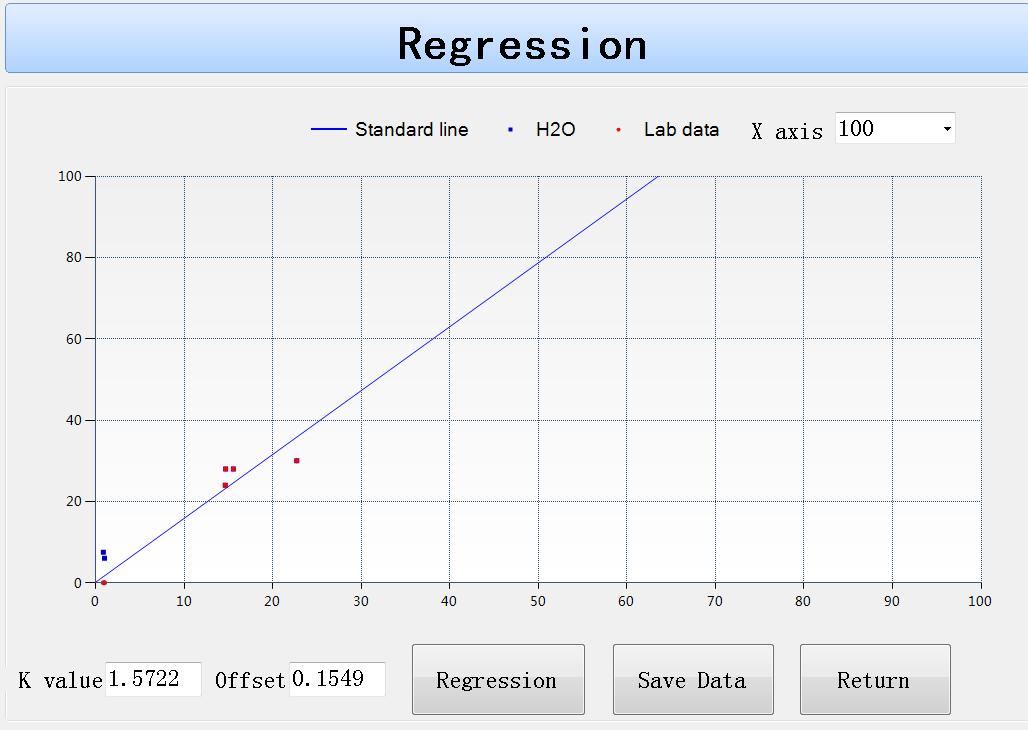 藍(lán)色的點為:未標(biāo)定前的水分值