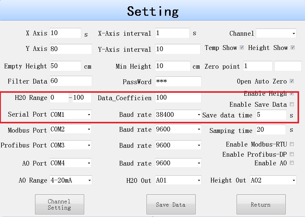 Save data time:數(shù)據(jù)保存時間間隔,最小為1s