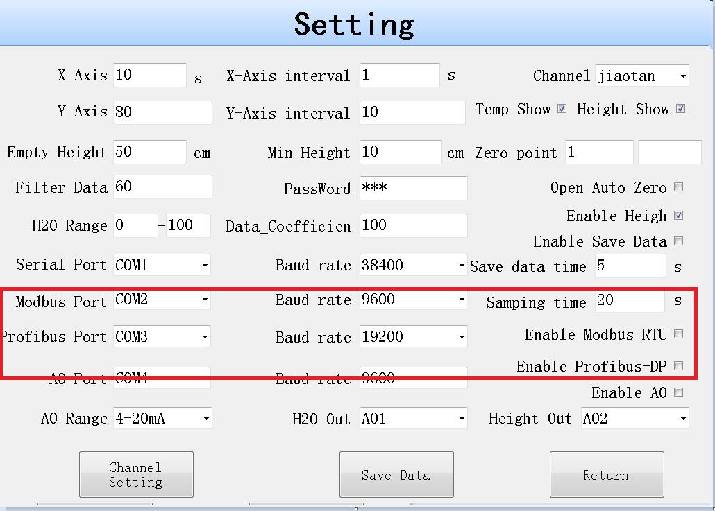Modbus Port:與上位機(jī)通訊串口號,默認(rèn)COM2.