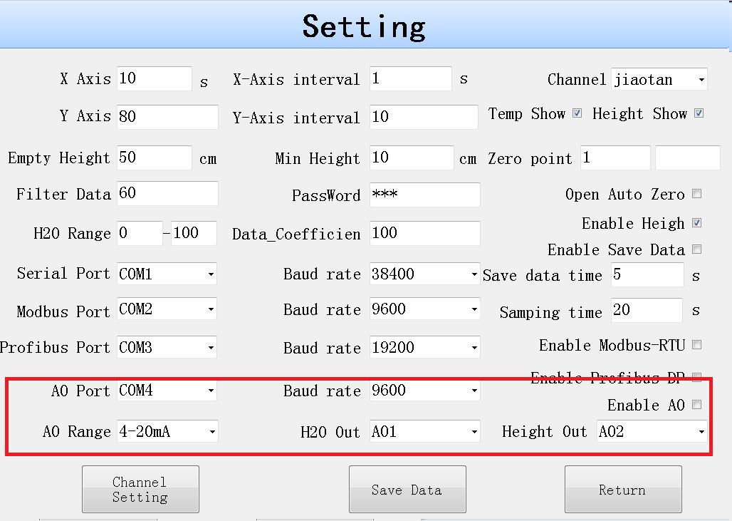 AO Port:與模擬量模塊通訊串口號,默認(rèn)COM4.
